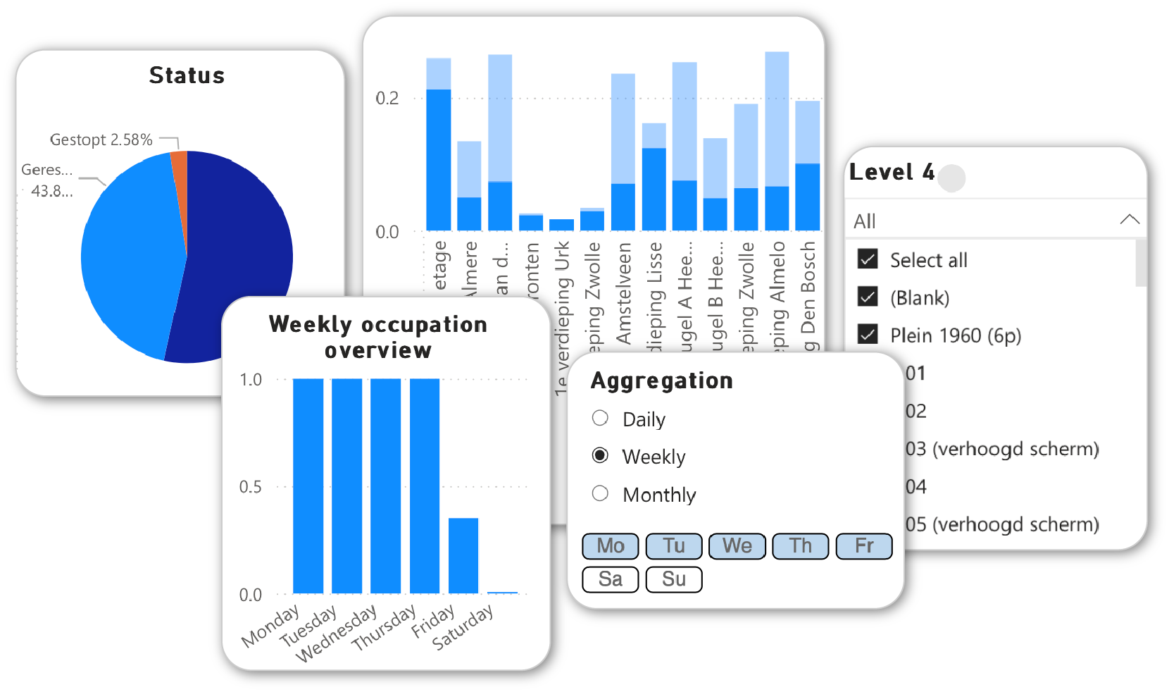- Bezettingsgraad: Welke werkplekken worden het meest (of juist niet) gebruikt?